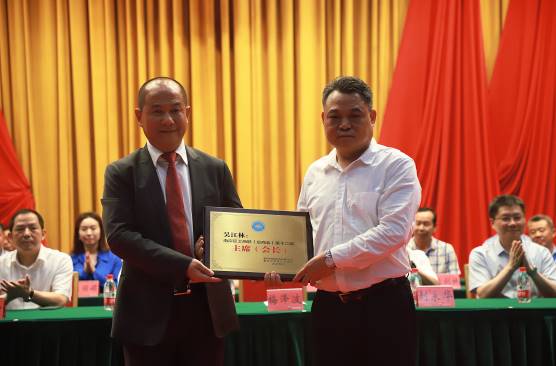 (區委常委、統戰部部長梅澤波為新一屆主席(會長)吳江林授牌)