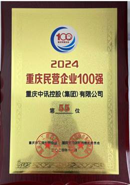重慶中訊控股(集團)有限公司再次榮膺“2024重慶民營企業100強”稱號,名列民企100強55位!